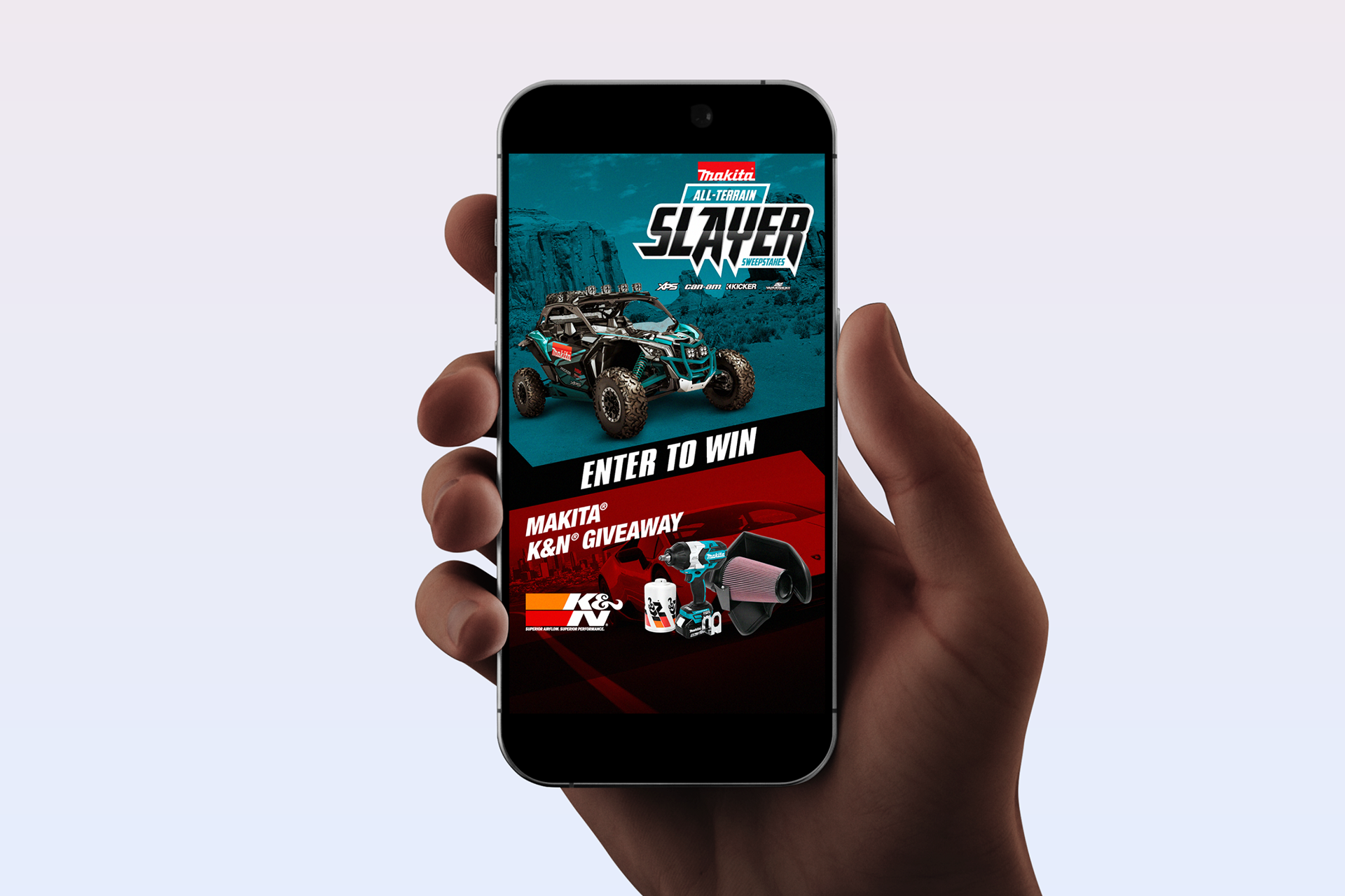 A dynamic series of social posts designed to amplify the Makita All Terrain Slayer Sweepstakes — supercharged by an electrifying K&N collaborative giveaway putting premium filters and a powerhouse Makita tool lineup up for grabs, driving explosive engagement across social channels.